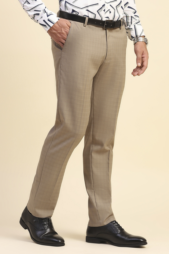 Mr. Huffman Sand Regular Fit Poly Lycra Trouser