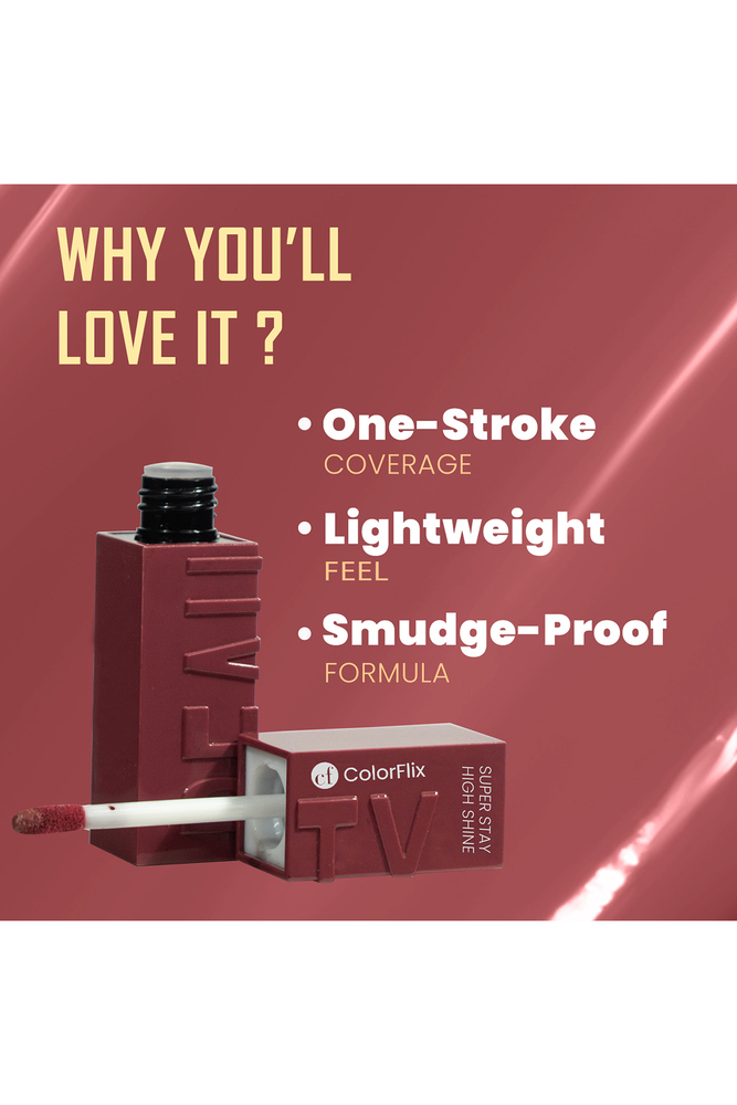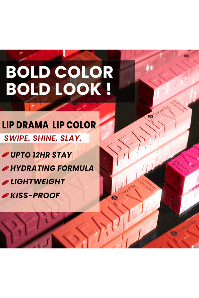 ColorFlix Lip Drama Super Stay Lipstick, High Shine Finish, Waterproof, Intense Pigment Long Wear, Bold Color, Smooth Texture, All Day Stay